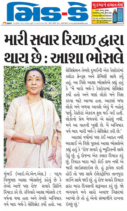 Asha Bhosle Mid day Gujarat 10th Sept