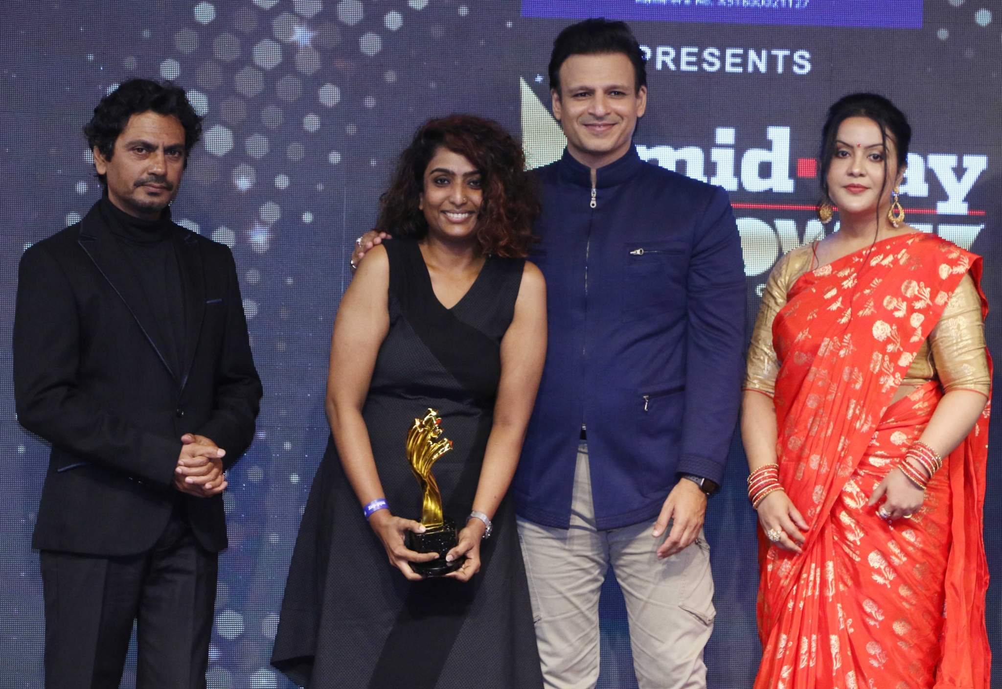 Nawazuddin Siddiqui, Nandini Viswanathan, Vivek Oberoi and Amruta Fadnavis at Mid-Day Showbiz Icon Awards 2020 at Grand Hyatt, Mumbai