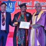 Anusha Srinivasan Iyer recieves an honorary doctorate at the hands of Madhu Krishan and Pawan Kumar Bhoot